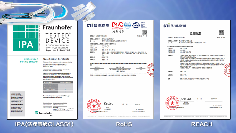 蘇州訊煜電子有限公司擁有20多年的線束、線纜行業(yè)經(jīng)驗,專注于無塵拖鏈、線纜、線束的研發(fā)和生產并提供3大領域的全集成一站式服務。目前,訊煜電子的無塵拖鏈護套已獲得IPA CLASS 1潔凈度、RoHS & REACH測試認證,運動排線、運動網(wǎng)線等產品獲得CE認證,產品的潔凈度、環(huán)保性、性能、可靠性、穩(wěn)定性、使用壽命等指標在行業(yè)內均達到了很高的標準。