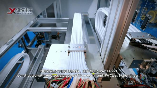 訊煜潔凈高柔運(yùn)動(dòng)排線 訊煜真空線纜,采用航天級(jí)納米材料,耐折彎達(dá)2000萬次以上,耐高低溫(零下60 至 零上200°C)、耐腐蝕、抗輻射、不釋氣,耐受工業(yè)、太空等嚴(yán)酷環(huán)境的考驗(yàn)。