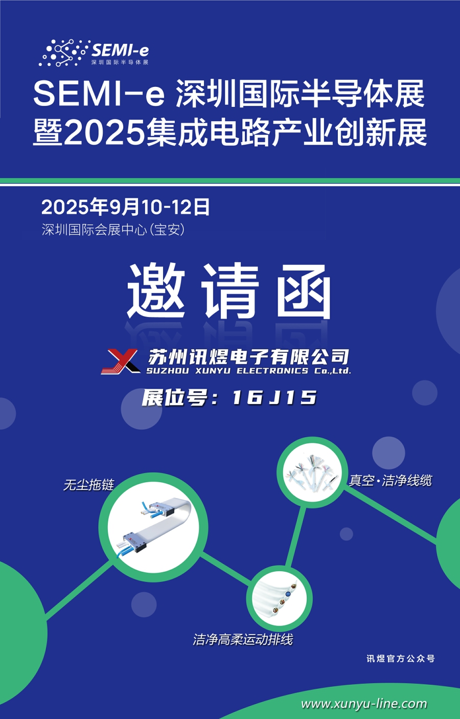 訊煜電子作為潔凈、無塵環(huán)境下運(yùn)動傳輸及保護(hù)部件的專業(yè)提供商,誠邀您參加2025深圳國際半導(dǎo)體展(2025年9月10~12日,展位號:16J15),屆時歡迎各界人士蒞臨參觀指導(dǎo)、交流合作!